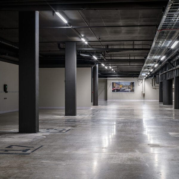 Som leietaker kan du leie parkeringsplass i den romslige kjellergarasje. Parkeringsplassene er svært generøse i størrelsen, noe som gjør det enkelt både å parkere og å manøvrere bilen.I garasjen finner du også egen bilvask og støvsuger, slik at du kan holde bilen ren og velstelt uten å måtte dra noe sted. Tilgangen styres digitalt, og kun autoriserte brukere har adgang, noe som gir ekstra trygghet.