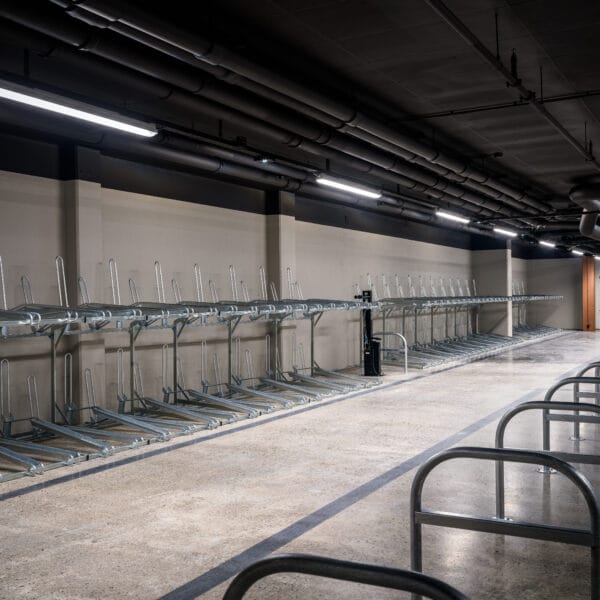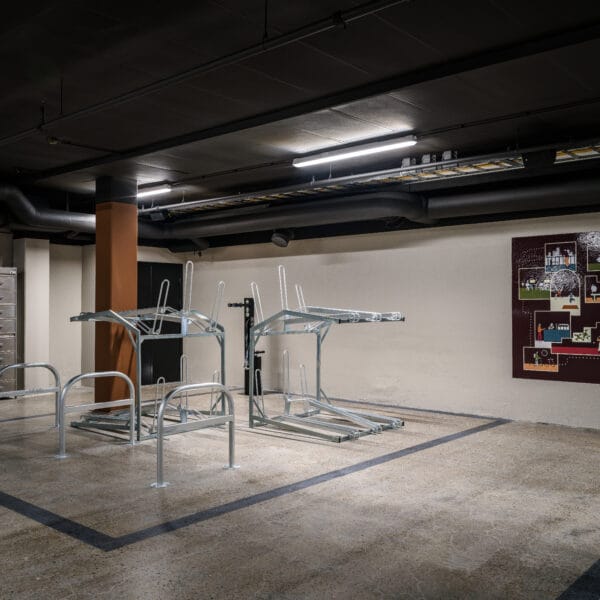 Som leietaker har du tilgang til en trygg og moderne sykkelparkering i kjelleren. Her finner du sykkelvask, låsbare skap, lademulighet for elsykkelbatterier og en verktøystasjon for småreparasjoner. Tilgangen styres enkelt via Unloc-appen, slik at kun autoriserte brukere slipper inn.