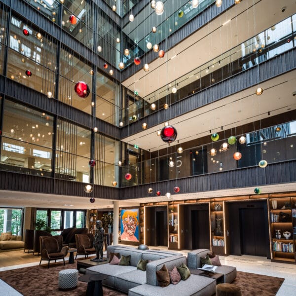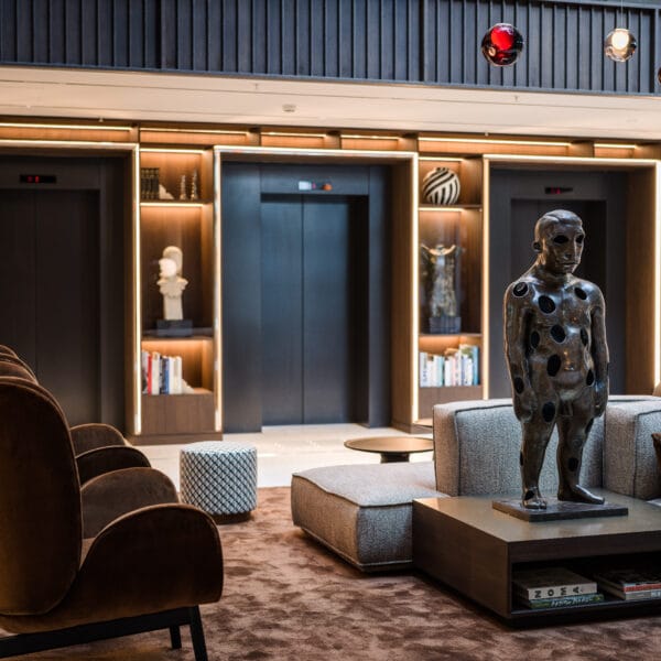 Ragde Eiendom sørger for bemanning i lobbyen, slik at du alltid har noen å henvende deg til. Her får du hjelp med praktiske spørsmål, besøkende blir tatt imot, og alt legges til rette for en smidig hverdag i bygget.Allerede ved ankomst blir du møtt av en foajé uten sidestykke – et rom preget av elegant design, smakfull innredning og nøye utvalgt kunst.