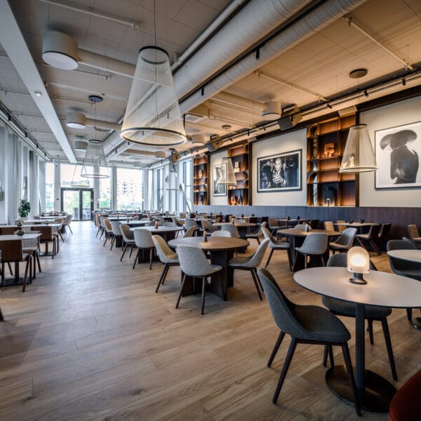 Her får du en moderne og stilfull atmosfære som løfter arbeidsdagen. Med over 250 sitteplasser innendørs og en flott takterrasse, kombineres eksklusivitet og komfort på en måte som gjør hvert måltid til en opplevelse.Her serveres mat laget med lidenskap av en kjøkkensjef med røtter fra Michelin-kjøkkenet.