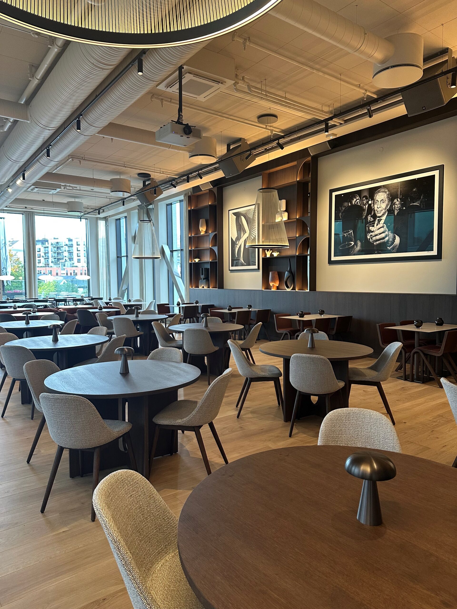 Kantine/restaurant – For et fast bidrag på 590 kr per måned får du tilgang til gode lunsjretter og andre alternativer til reduserte priser, i stilfulle omgivelser.